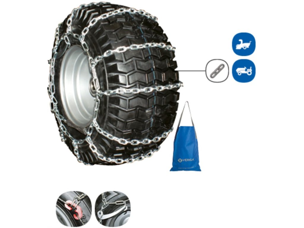 Ekonomické řešení pro zahradní stroje a ruční sněhové frézy. Řetězová síť je pouze v příčném směru. Je vyrobena z řetězu o průměru 3,5 mm nebo 4,5 mm ze speciální legované oceli a je tepelně zpracovaný tak, aby jeho životnost byla co nejdelší. Řetěz je kompletně pozinkovaný. Napínací řetěz obsahuje napínací páku pro optimální dopnutí. Dodáváno v odolných látkových pytlích.
