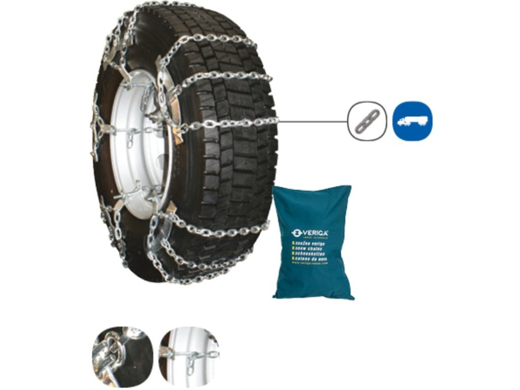 Řetěz se třmeny. Klasický bezpečnostní mechanismus, aretace pomocí šroubů a matic. Rychlá instalace bez nutnosti popojíždění vozidla. Průměr řetězu je 5,7 mm, 6,4 mm nebo 7 mm. Řetězové články mají profil ve tvaru "D" pro bezpečný záběr na sněhu a ledu. Určeno pro vozidla, která mají otvory v ráfcích. Pro zajištění optimální funkce doporučujeme použít na každé hnací kolo alespoň tři řetězy. Dodáváno v odolných látkových pytlích, 6 kusů v balení.