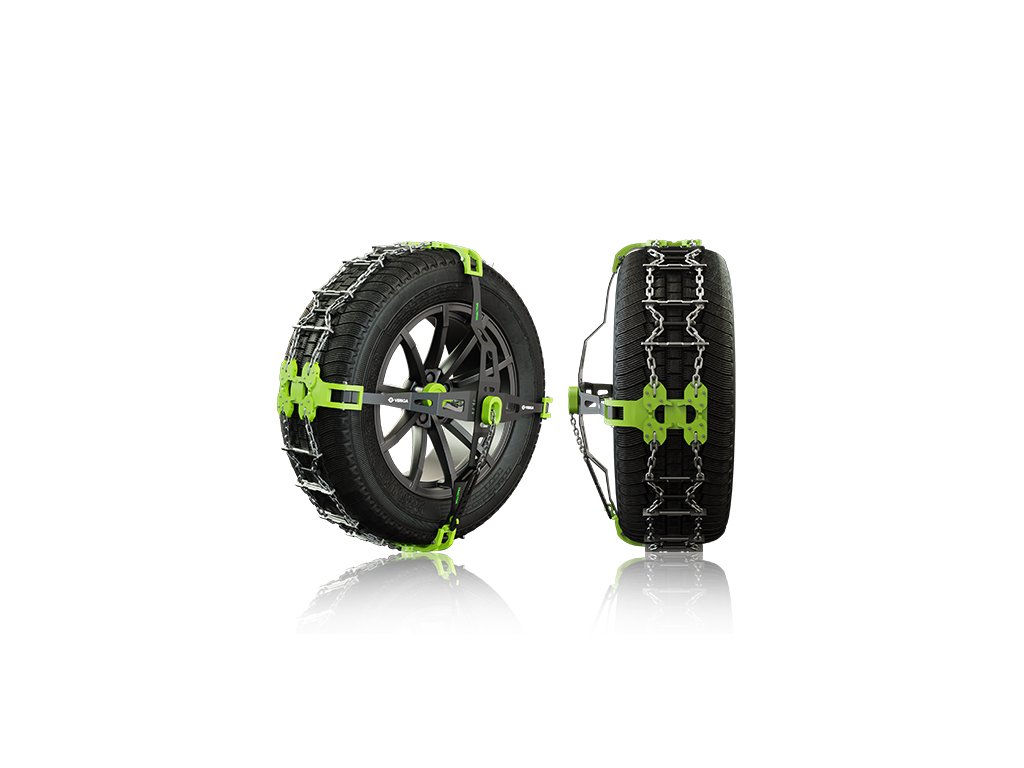 Speciální řetězy, které se nachází na běhounu pneumatiky a nijak nezasahují za ni. Řetězy jsou pouze na běhounu a zvenčí kola, kde se připevňují. Řetězy jsou plně automatické, sami se dotahují.